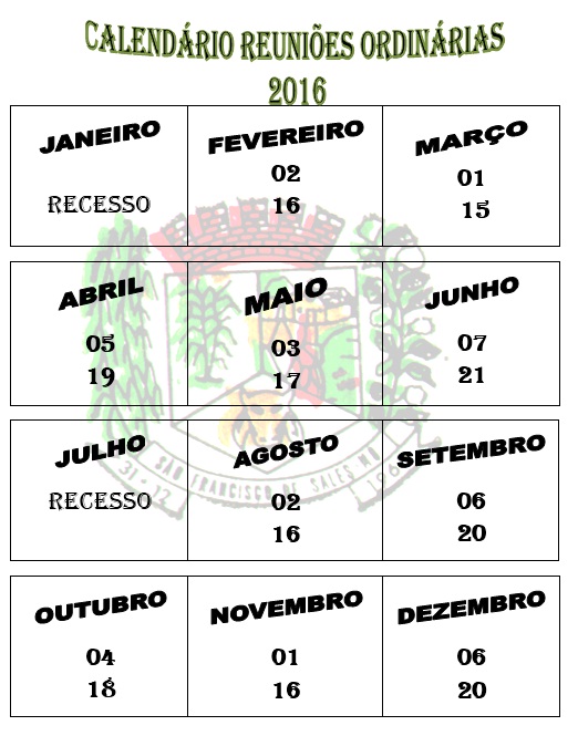 Calendário Reuniões Ordinárias 2016